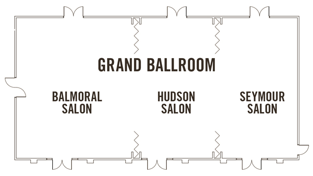| Grand Ballroom | 45 x 95 | 4275 | 400 | 500 | 500 | 220 | 100 |